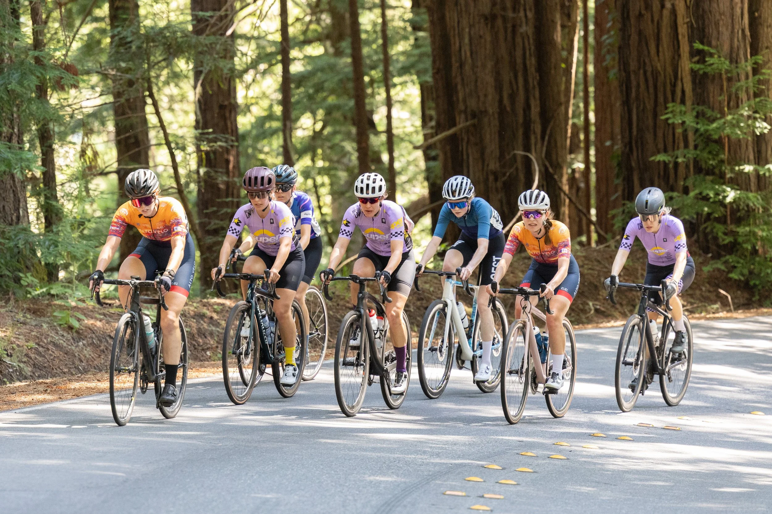 The pace was relatively chill until we turned onto Stage Road and the first climb began. Super Sprinkles immediately attacked, so riders hammered the two Stage climbs and descents. A small breakaway group formed with two Super Sprinkles riders, one unattached rider, and Kat. I was very determined not to get dropped, so I pushed the climbs and descents and smashed solo for about a mile on the flattish section that followed to bridge up to the chase group of six riders, including Katie. We then rode together for pretty much the remainder of the race, trading pulls for most of the flat and rolling sections. Katie kept the paceline efficient, and we continued gaining on the breakaway group. We found Kat after the first Haskins descent, and she joined our chase group. Given how dynamic the course was, I had to constantly remind myself to stay engaged and not let up on the effort, both physically and mentally. I wanted to finish the race feeling like I put in everything I had on the day, and didn’t give up at any point, and there were certainly moments when I wasn’t sure if I had the legs or descending skill to stay with my group, but I was able to hang with them until the end of the race, which felt like a huge achievement.