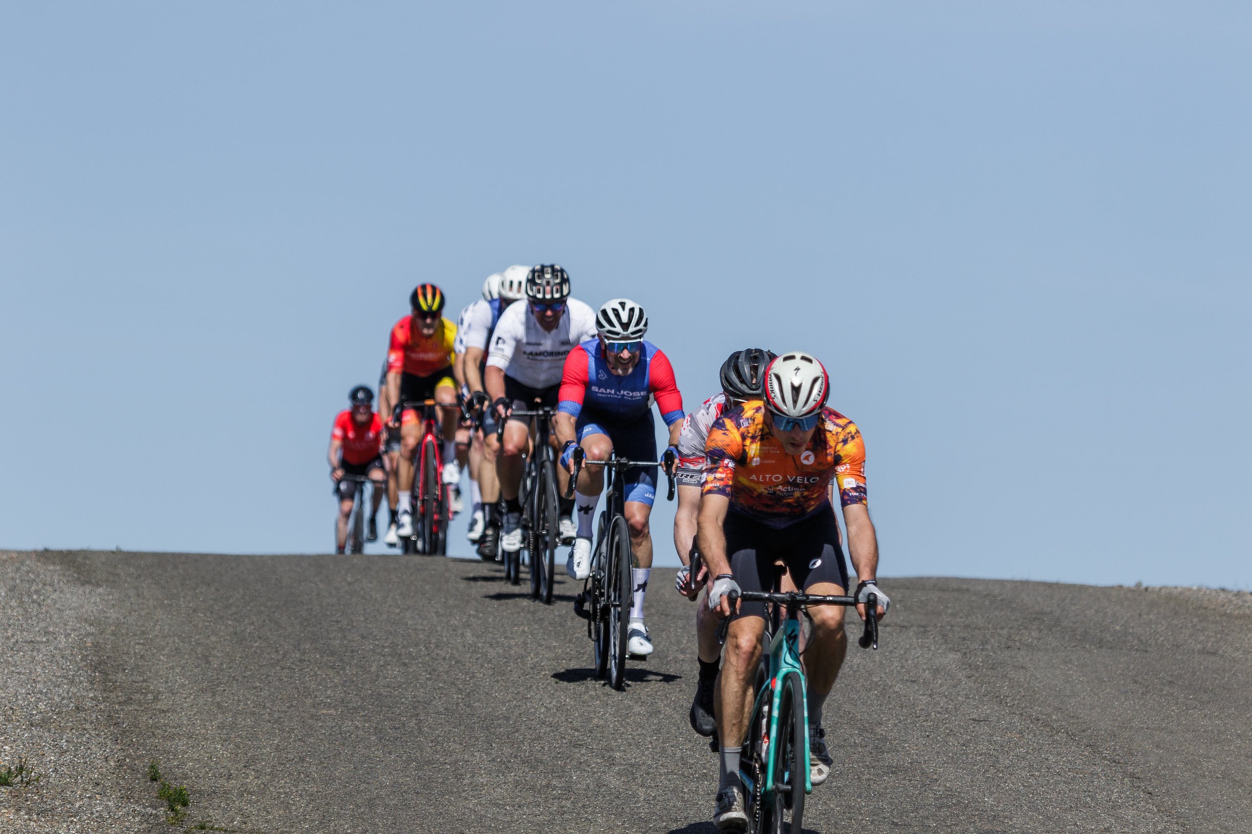 With about 10 miles to go, the race really picked up. Every climb was ridden at full gas, and the group started thinning out. I made a point to stay near the front to avoid getting caught behind splits. At one point, Adam (former AltoVelo, now SJBC) asked if I had a gel, and I handed him one—small moment, but cool to still help out mid-race.