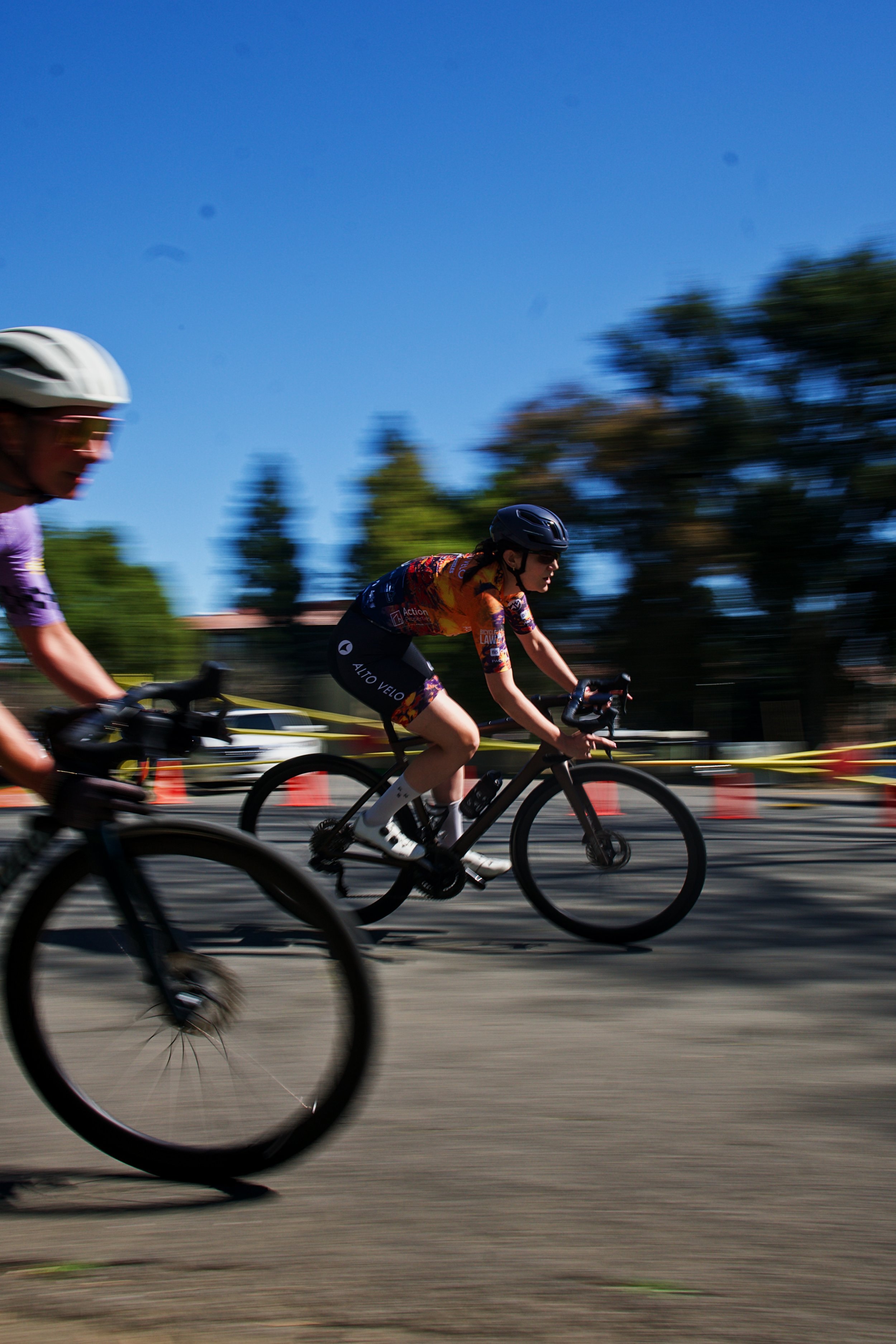 This was only my second criterium, so I came in with modest expectations. My main goal was to stay within the top five wheels or near the front to help control the pace and get more comfortable with race dynamics. I was especially unsure how the chicane would ride at speed, so during the opening laps I followed the pack and kept a close eye on two strong Super Sprinkles riders, Sarah Moll and Susan Xu. Having ridden with both of them outside of racing, I knew they were skilled and confident bike handlers.
